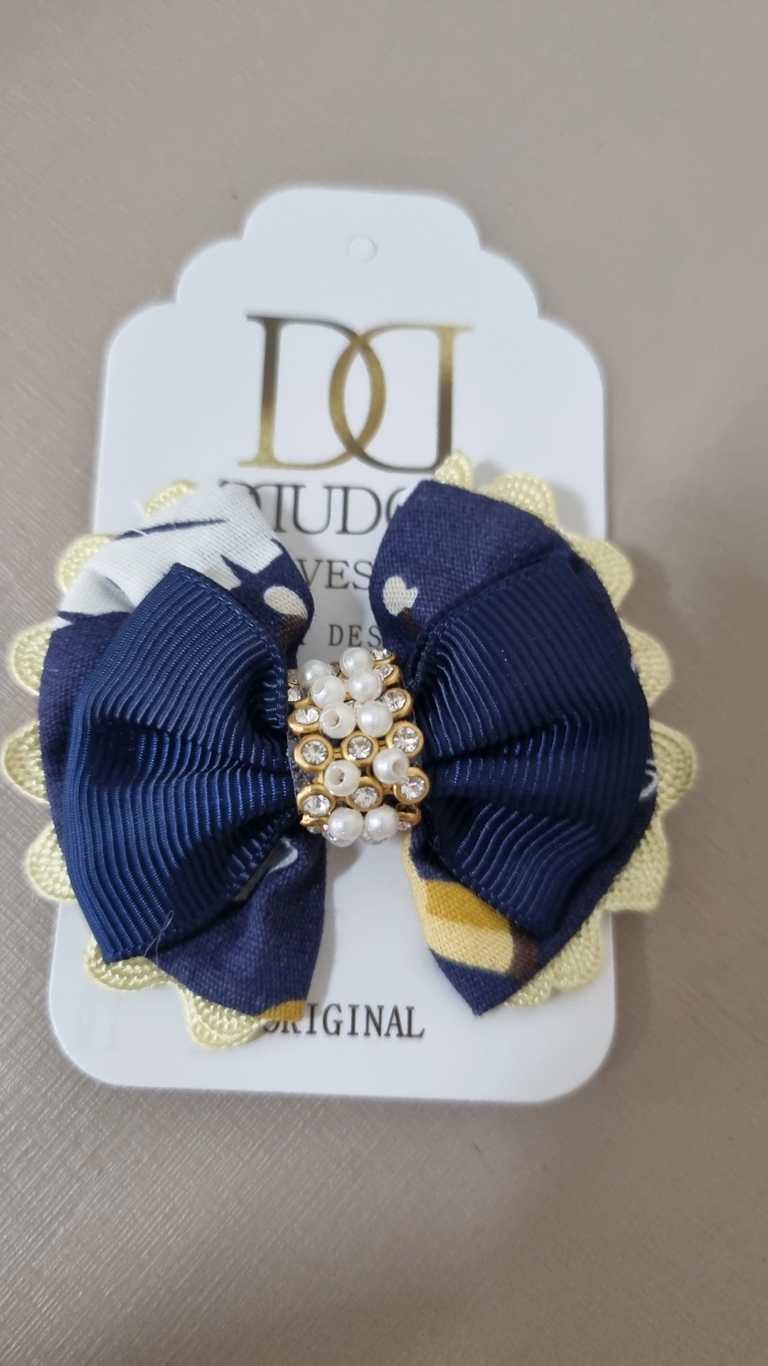 Laço com detalhes em pérolas e strass. Presilha elástico.