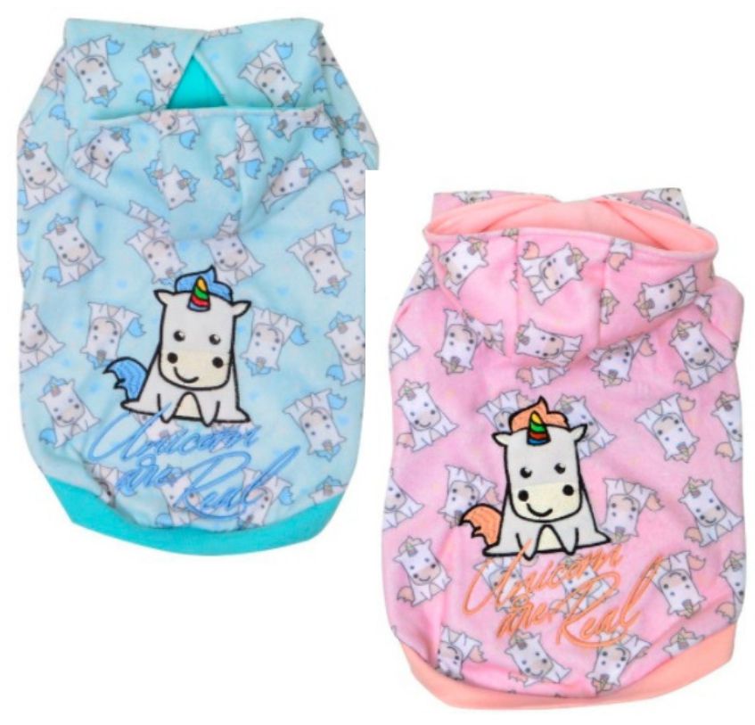 Blusão com capuz, bem confortável e fácil de vestir. Nas cores azul ou rosa.