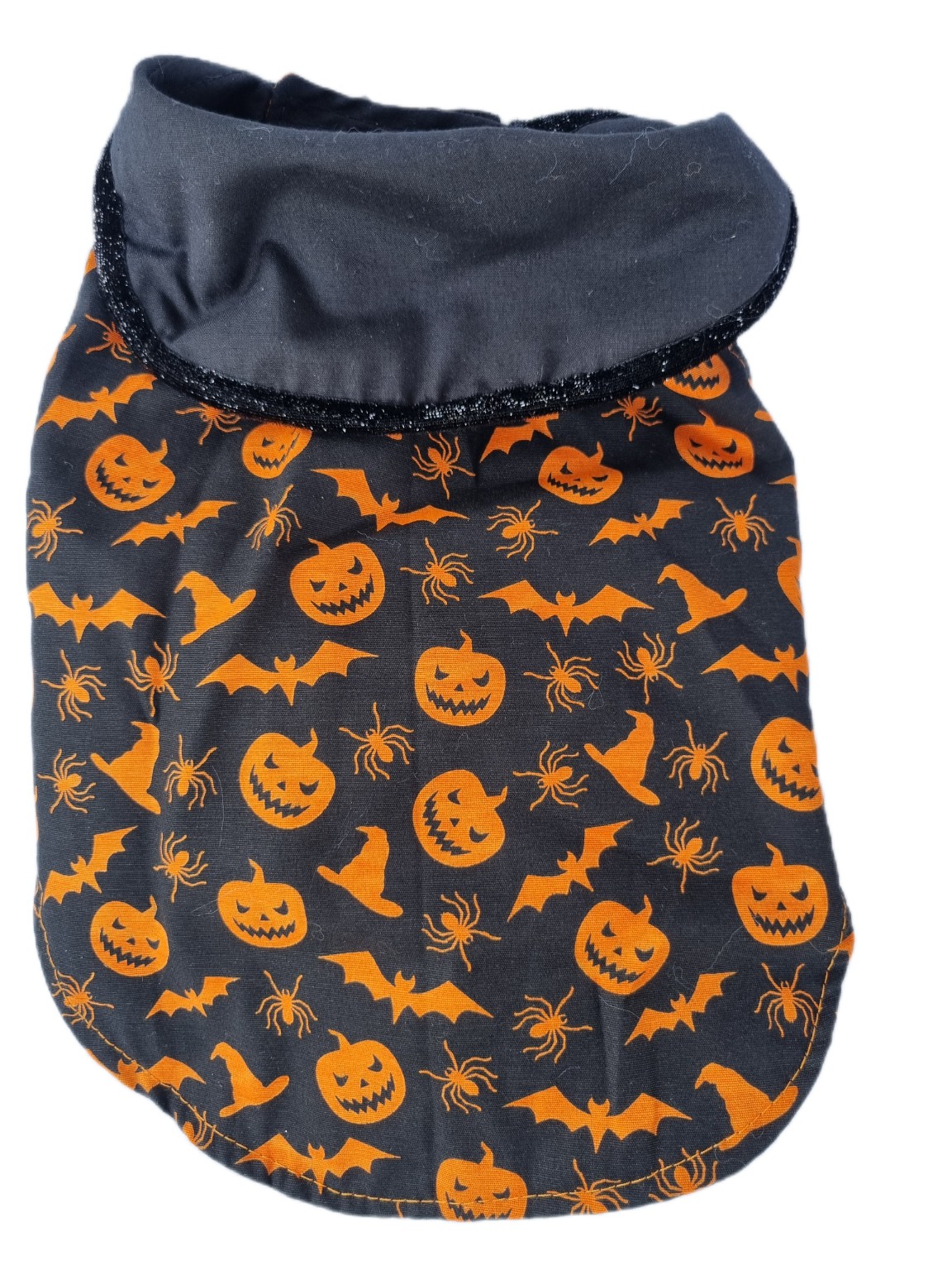 Capa em tricoline algodão, fechamento em velcro regulável, gola estruturada podendo ser usada levantada pra cima ou para baixo.