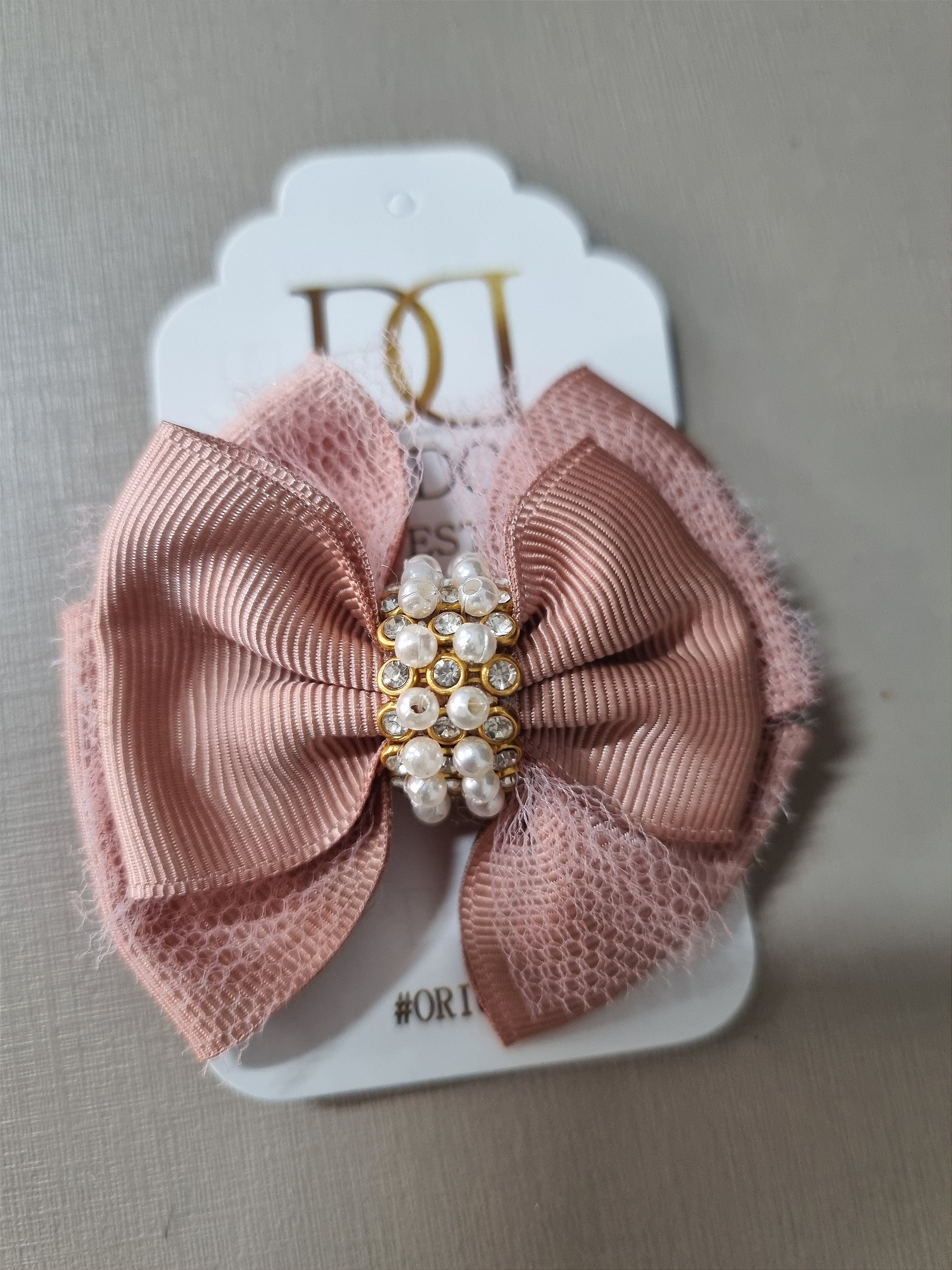 Laço com detalhe em pérolas. Presilha Bico de Pato.