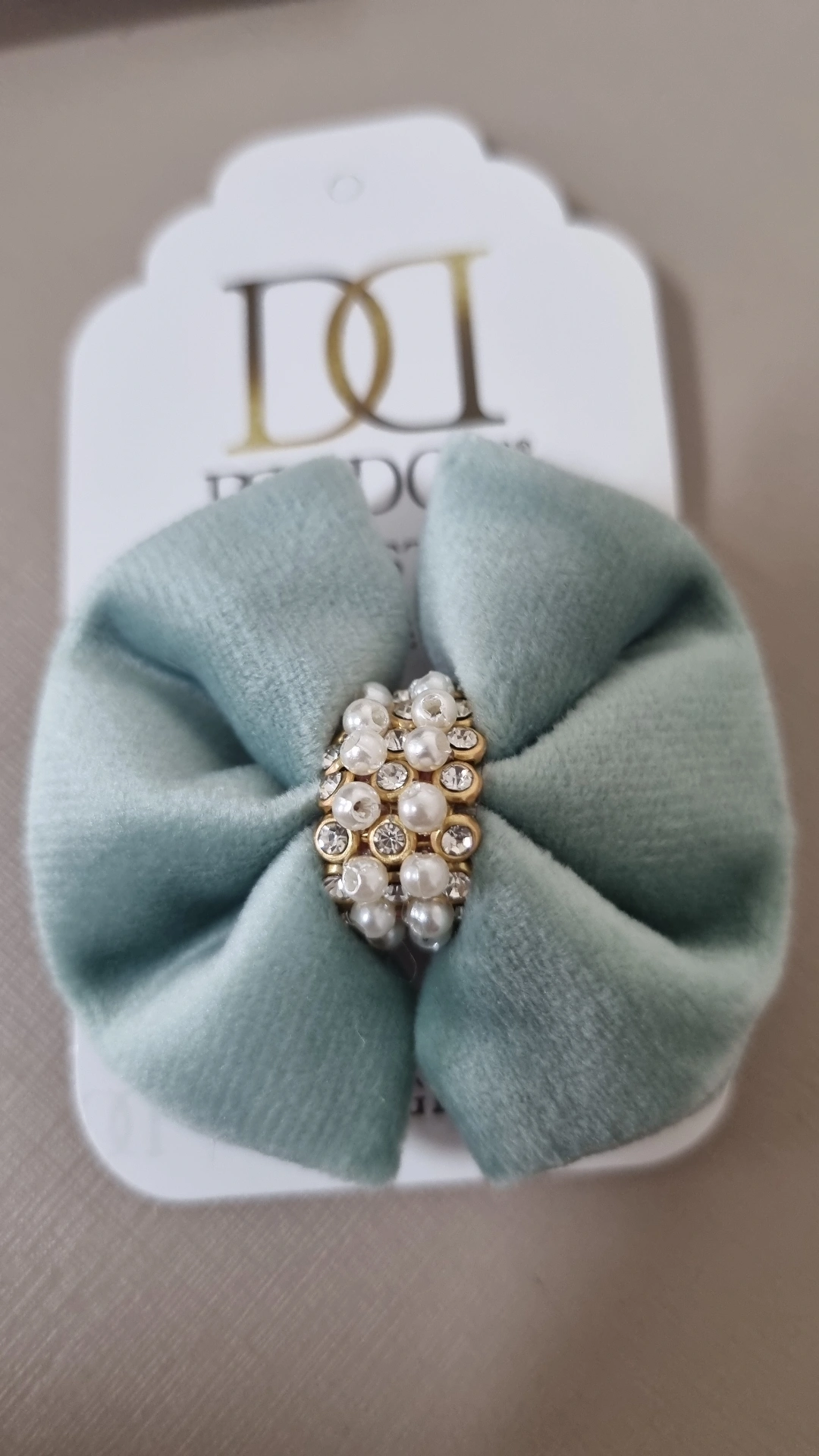 Laço com detalhes em pérolas e strass. Presilha bico de pato.