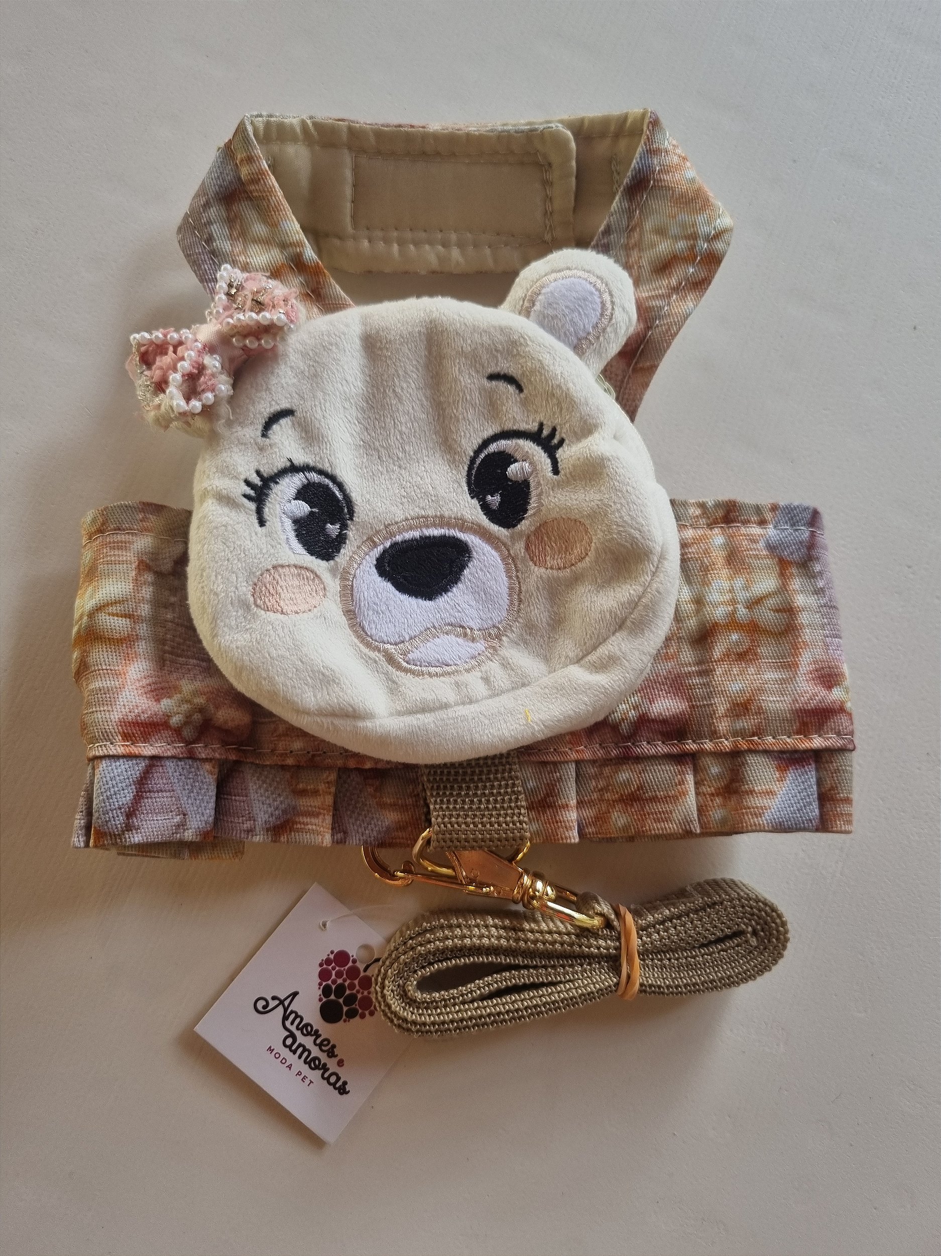 Peitoral com Mochila, com laço removível com detalhes em pérola.