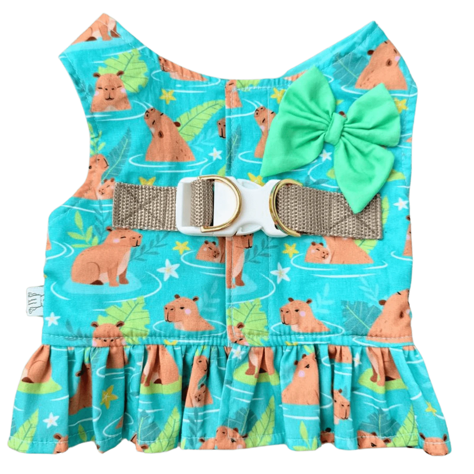 Tecido: sarja 100% algodão. Fechamento em velcro reforçado, clique de segurança, mosquetão com engate para guia. Acompanha guia.