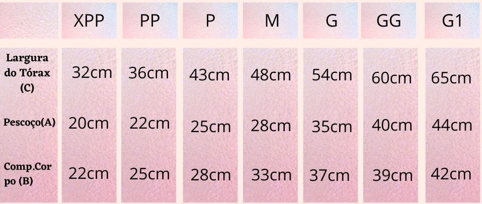 PARA ADQUIRIR ROUPAS NO TAMANHO CORRETO, CONFIRA A TABELA DE MEDIDAS LOGO ABAIXO: